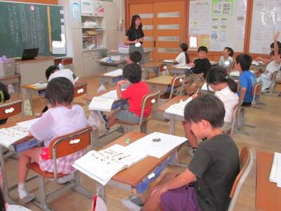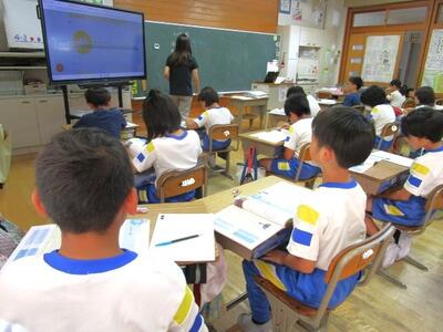 【5年生】1枚目の写真は、外国語の学習の様子です。「I can ~」の学習で、自分ができることやできないことを、ワークシートに記入していました。