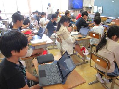 【5・6・7組】1枚目の写真は、算数の四角形について学んでいる様子です。