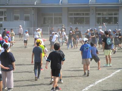 9月30日(火)の昼休み(ロングフリータイム)に、運動委員会が主催する「ドッヂボール大会」が開催されました。運動委員会で企画して、校内にチラシを貼ったり、放送をして周知してきました。昼休みには、たくさんの子どもたちが会場の第二校庭に集まりました。1・2年生、3・4年生、5・6年生に分かれて、大人数でドッヂボールを行いました。とても素敵な企画でした。