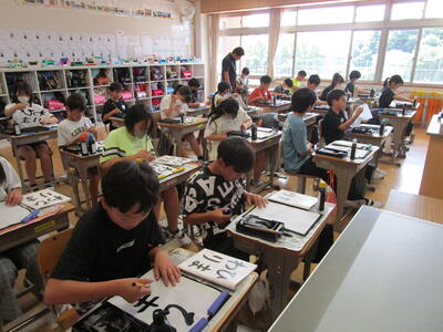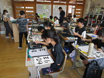 校舎内に戻り、5・6年生のクラスを見てみると、国語、図工、理科、書写などでした。