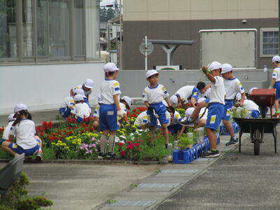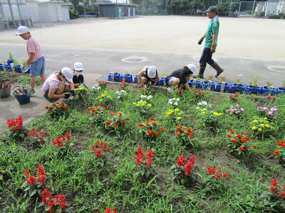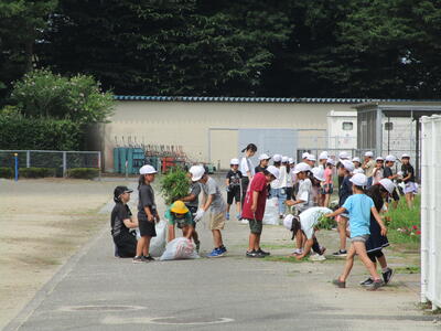 また、校舎前の花壇では2年生が一生懸命草取りをしてくれていました。