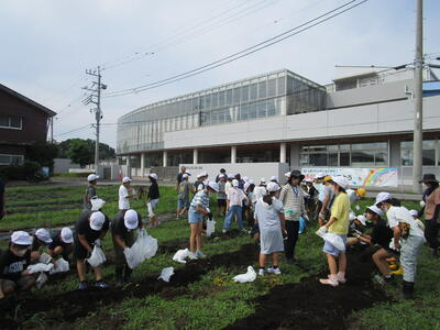 また、学校農園では、6年生の子どもたちがこれまで理科の光合成の実験などで栽培してきたジャガイモの収穫作業を行っていました。たくさんとれたようです。とれたジャガイモは各家庭に持ち帰りますので、おいしく食べてください。