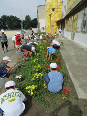 校舎前の花壇も、雑草が再び生い茂ってきましたが、3年生の子どもたちが草取りを行ってくれました。ありがとうございます。