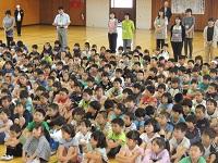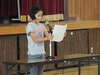 校長先生から、阿小っ子の合言葉「自分で 自分から」で、今日からも取り組もうという話がありました。また、9月12日(土)の運動会に向けて、赤組と白組の団長にエールが送られました。校長先生の話の後、夏休みに「北の大地体験ツアー」に参加した代表者の作文発表がありました。とても上手でした。