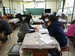 子どもたちの地域での情報を得ることで、よりよい指導を目指すことを目的に、民生児童委員会が開催されました。全体会は、多目的室で行われました。子どもたちの地域でのあいさつや、登下校の様子について情報提供をいただきました。本校は「あいさつのこだまする学校」を目指していますが、そのためには、保護者同士のあいさつや、地域でのあいさつが重要であることを確認しました。分科会は音楽室で行われました。地区別に、担当教職員との話し合いが行われました。