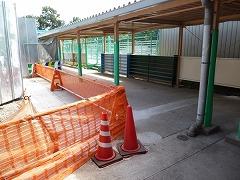 夏休み期間中、工事の関係で何かとご不便をおかけしましたが、体育館側通路と校庭西側道路の工事が終了しました。体育館北側駐車場は、一部工事関係の資材が保管されていたり、カラーコーンで区分されたりしています。スピードに十分配慮されて通行くださいますようお願いいたします。