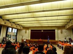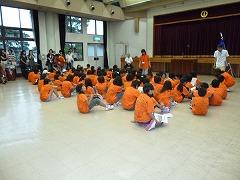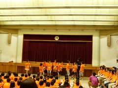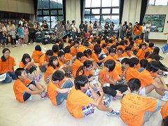 8月21日に北の大地体験ツアー解団式が、片岡公民館で行われました。予定より5分早い到着でしたが、すでにお家の方は大勢お迎えに来ていました。4泊5日の体験ツアーでしたが、子どもたちは少したくましくなって帰ってきたようです。76名を代表して、矢板市立東小学校のバルガス・アルマンドくんが、多くの方への感謝と、一緒に過ごした仲間の大切さ、そしてこのツアーで得た経験をこれからの小学校生活に生かすことを発表しました。その後、各班ごとの体験発表を行いました。おそろいのオレンジのTシャツには、たくさんのメッセージが書き込まれていました。