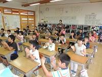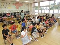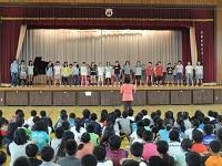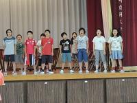 校長先生から、阿小っ子の合言葉「自分で 自分から」で、今日からも取り組もうという話がありました。また、9月12日(土)の運動会に向けて、赤組と白組の団長にエールが送られました。校長先生の話の後、夏休みに「北の大地体験ツアー」に参加した代表者の作文発表がありました。とても上手でした。