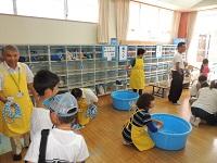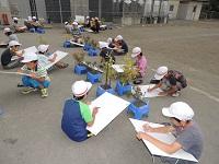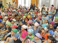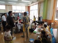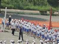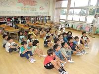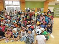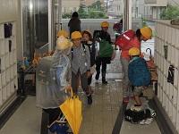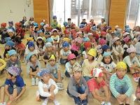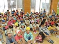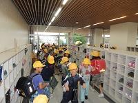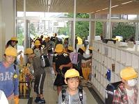 ます。今回は、学童保育の指導員の方も避難訓練の様子を見学に来られました。