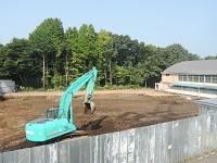 プール工事は、校庭鉄板敷き込み作業に入っています。