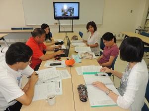 先生方の研修です。道徳の時間の授業について学んでいます。