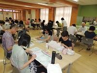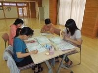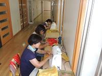 明日は、朝6時から練習とのことです。阿小っ子、がんばっています。お母さんたちもがんばっています。次の大会に備えての衣装づくりです。