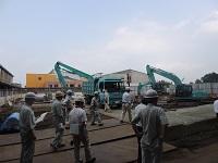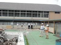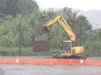 プール工事です。校庭に敷いてあった鉄板の撤去作業です。