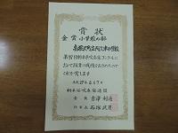 6年生部員(1名欠席)が、校長室に報告に来ました。銀賞というすばらしい賞です。参加小学校は東関東の県代表29校(1校出場辞退-常総市立水海道小学校)です。あともう一歩で金賞との評価を得たそうです。次の大会に向けて、笑顔でがんばってください。