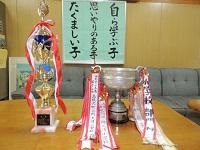 6年生の部員が町役場を訪れ、部長から二つの県大会で金賞を受賞し、東関東大会(9月、10月)へ出場することになりましたと報告させていただきました。町長さんからは、お褒めの言葉と心温まる励ましの言葉、記念品をいただきました。また、教育長さんからも温かいお言葉をいただきました。町長さん、教育長さんありがとうございます。