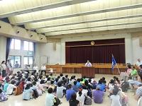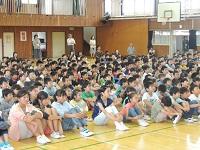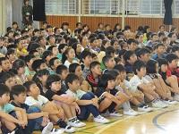 夏休み後全校集会です。話を聞く態度がりっぱです。すばらしい!