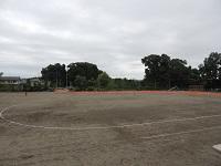 校庭に敷かれていた鉄板は撤去されました。整地をしてからオレンジネットを撤去します。