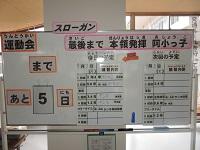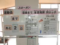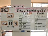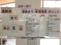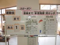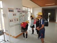 登校後、今日の運動会練習予定を確認します。本校の合言葉「自分で 自分から」を推進