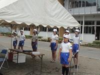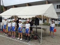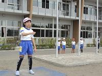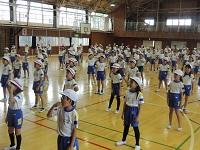 ♪朝のあいさつ運動を終えた阿小っ子、もう一度、今日の運動会練習を確かめます。