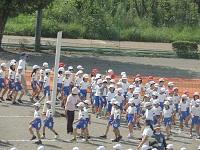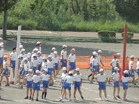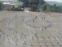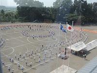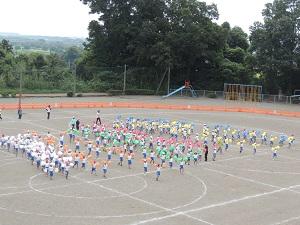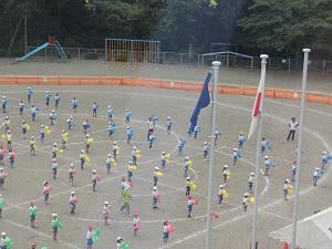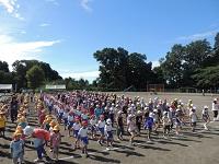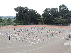 校庭での運動会全体練習です。久しぶりです。2回目です。