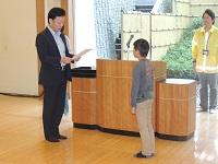秋の交通安全県民総ぐるみ運動(9/21~9/30)の実施に伴い、町の交通安全運動出発式が、元気あっぷむらで行われました。出発式終了後、親子で考える交通安全ポスター・標語コンクールの表彰式が行われ、阿小っ子3年生が表彰されました。