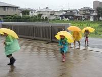 おはようございます。阿小っ子は、雨の中でも、元気に登校です。