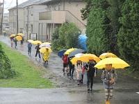 おはようございます。小雨模様ですが、今日も元気に登校です。