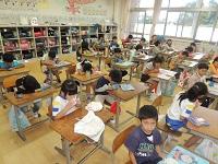 する具体策です。教室の様子は、登校後、8時ごろの5・6年生です。阿小の大黒柱の高学