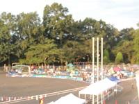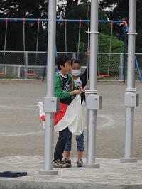 5時30分現在、昨夜の☂で、校庭の一部に水たまりが見られます。また、万国旗が垂れ下がっています。開会式までには整備し、実施予定です。朝早くから並んでいただいている保護者の皆様、6時の花火の合図まで、もう少しお待ちください。