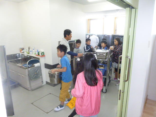 6年生が修学旅行でいません。5年生が給食の放送、国旗当番、給食の片付け等をがんばっていました。