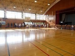 町民広場に到着すると、元気な声を出しながら準備運動にがんばる姿は、やる気満々です。友達を応援しながら、みんなでがんばった2年生でした。