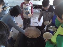 配膳された料理は、とてもよい香りにつつまれ、食べる前から食欲をそそられます。特にごはんはいつも通り炊き加減もちょうどよく、一粒一粒が光っています。わかさぎのフライは、子どもたちが魚を丸ごと食べられるとても貴重なメニューですが、今日もサクサクで食べた瞬間、口の中にわかさぎの風味がひろがります。食感は、甘さ辛さに並ぶ味覚のひとつですが、このフライはいつもその大切な味覚を満たしてくれています。食感と言えば、くるみ和えのくるみの食感がまた絶品です。根菜のごま汁は、主菜としてもいいぐらいの食べ応え感です。それは絶妙な配分で使われるごまと味噌のベストマッチ、そして油揚げが名脇役としてボリュームたっぷりの一品になっています。