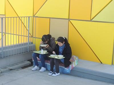 雨のフリータイム(昼休み)です。さて、阿小っ子はどこに・・・。