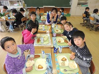 2年2組の給食の様子です。おいしい笑顔をよろしくね。