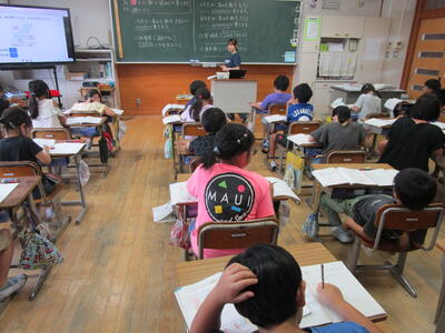 今年度、阿久津小学校は本事業においての「拠点校」となり、学力向上推進リーダーが週3日(月・水・金)は本校において、それ以外の2日間は町内の他の小学校において勤務して、教職員の授業力向上のために活動を展開しています。具体的な内容として、リーダーと本校の教員が国語と算数の授業について一緒に考え、実践を通して教員の指導力が向上し、それに伴い児童の学力の向上を図ることがねらいです。