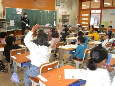 【1年生】1枚目の写真は、道徳の学習の様子です。「すてきなことば あふたあゆう」を教材とした学習で、阿久津小学校の良いところをたくさん発表していました。