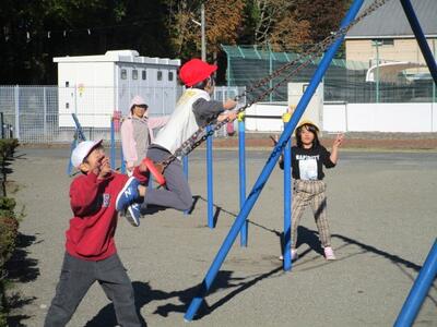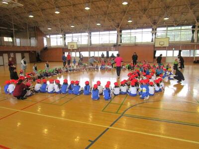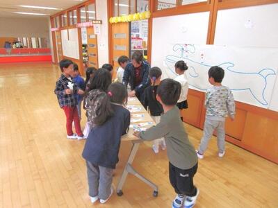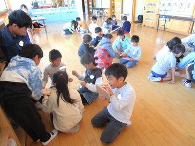 【1年生】今日は、幼保小連携事業の一環で、年長の子どもたちと楽しく遊ぶ活動を行いました。高根沢第二幼稚園とこばと保育園の子どもたちが来てくれました。笑顔いっぱいの集いになりました。