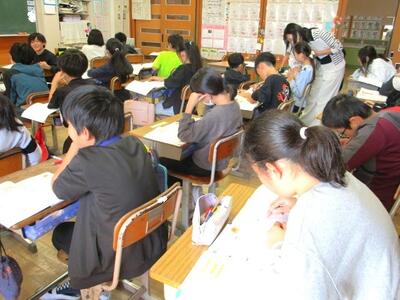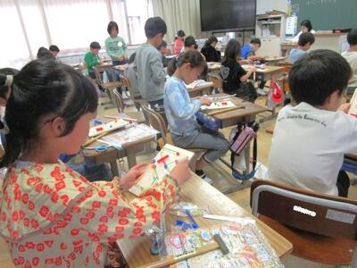 【5・6・7組】今日は、地区内の支援学級の子どもたちの作品展がありました。帰ってきてほっとしている様子です。