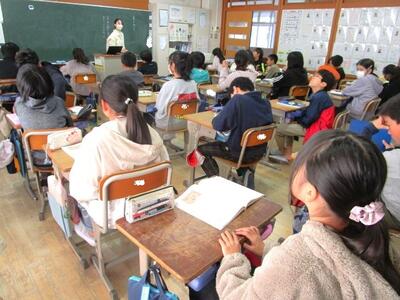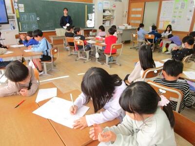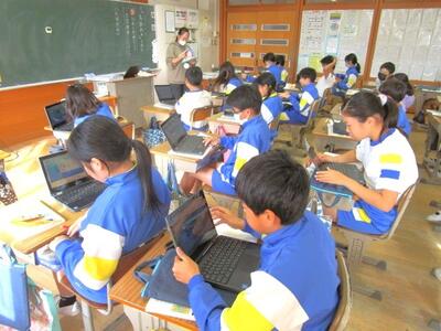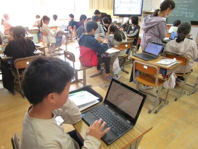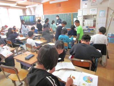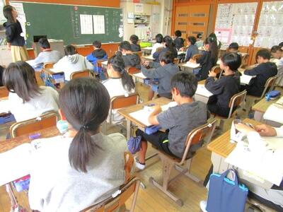 【5年生】1枚目の写真は、国語の「浦島太郎ー御伽草子より」の学習の様子です。今日は、子どもたちが知っている浦島太郎の話の内容について確認し合いました。