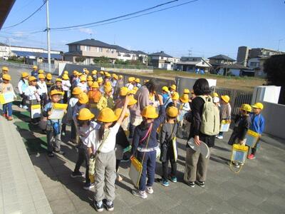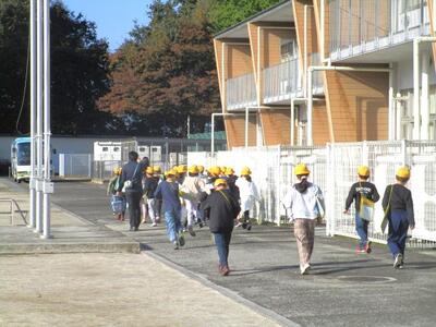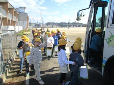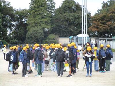 【3年生】1枚目と2枚目の写真は、社会科校外学習に出発するときの様子です。今日は、高根沢消防署に「火事をふせぐ」秘密を探るために消防署の見学に行ってきました。