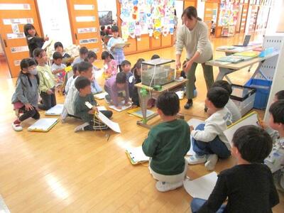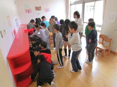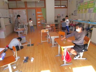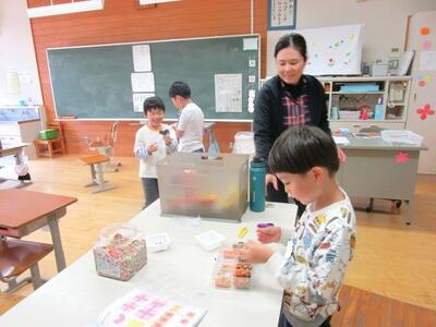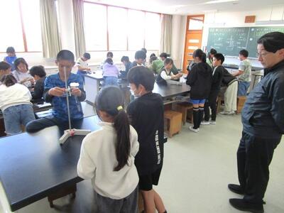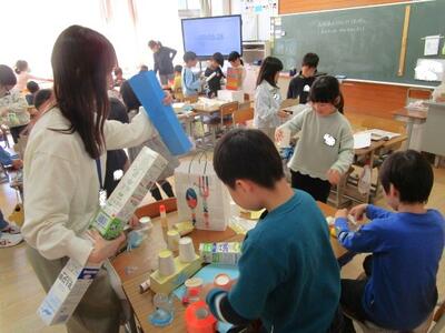 【2年生】1枚目の写真は、生活科の「うごく うごく わたしの おもちゃ」の学習の様子です。今日は、グループごとに分かれて、動くおもちゃづくりを行いました。