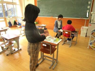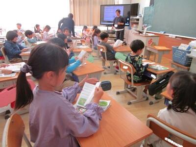 【2年生】1~3枚目の写真は、遠足に関する話を聞いている様子です。遠足の日が近づいてきましたから、今日は一斉にしおりを配付して注意点などを話しました。