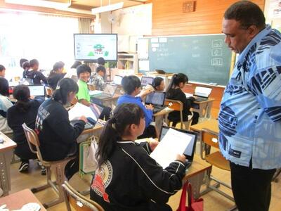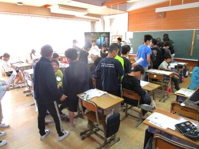 【6年生】1枚目の写真は、社会科の「武士による政治の安定」の学習の様子です。江戸時代になって社会が安定する要因の一つである大名の配置について話し合っていました。