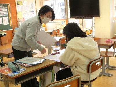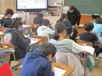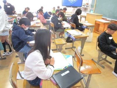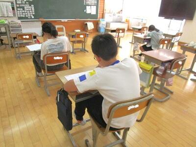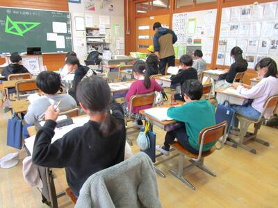 【3年生】1枚目の写真は、理科の時間の様子です。ちょうど、前の時間に行ったテストの返却をしている場面でした。子どもたちは間違ったことろをすぐに確認して、間違いなおしにいそしんでいました。