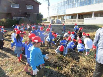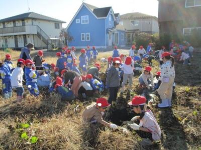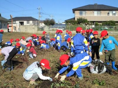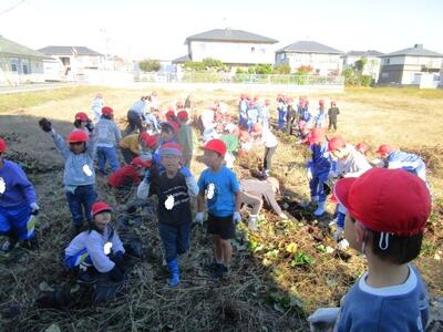 【1年生】今日は、5月に苗を植えたサツマイモの収穫を行いました。ツルを引っ張ったり、土を掘り起こしたりして、いろいろな大きさのサツマイモを見つけました。