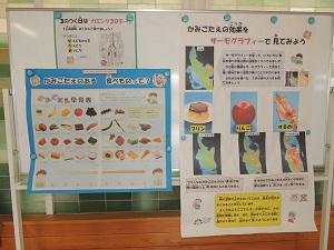 今日の献立は、「こくとうパン、牛乳、チキンチーズやき、きのみサラダ、さつまいもとひらたけのシチュー」です。708キロカロリーです。