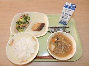 今日の献立は、「ごはん、あじつきのり、牛乳、さばスタミナやき、ブロッコリーとひらたけのサラダ、こんさいのごまじる」です。638キロカロリーです。