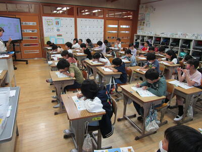 どの児童も、姿勢正しく真剣に授業に取り組んでいました。