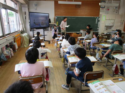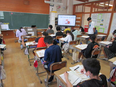 5・6年生の教室では、どのクラスも真剣な表情で授業に取り組んでいました。さすが上級生だけあって、「よい姿勢」を保って参加しています。また、今年力を入れて取り組んでいる「返事」もきちんと言える子が増えてきたような気がします。大変立派です。