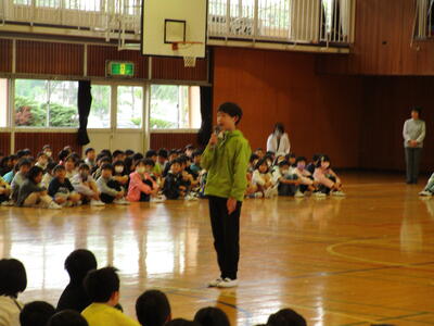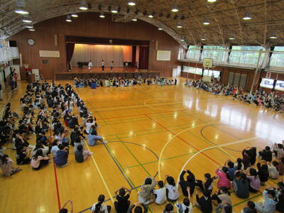 1年生から6年生まで全校生が体育館に一堂に会するのは、今年度初めてとなりました。